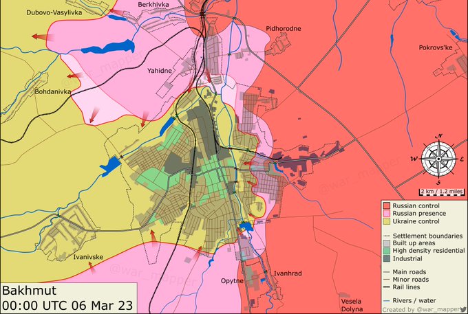 🇷🇺 have advanced west of the city reaching the road between Bakhmut and Bohdanivka.