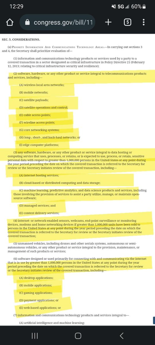 In very specific terms a lot of U.S. websites would be impacted. Why? Because a lot of websites use third-party ‘plug-ins’ or ‘widgets’ or software created in foreign countries to support the content on their site. The “Restrict Act” gives the DNI the ability to tell a website using any “foreign content” or software; that might be engaged in platform communication the U.S Government views as against their interests; to shut down or face a criminal charge. In very direct terms, the passage of SB686 would give the Dept of Commerce, DNI and DHS the ability to shut down what you are reading right now. This is a big deal.
