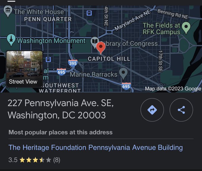 A search of the address on this invitation for the @GovRonDeSantis event shows that it is @Heritage Foundation.