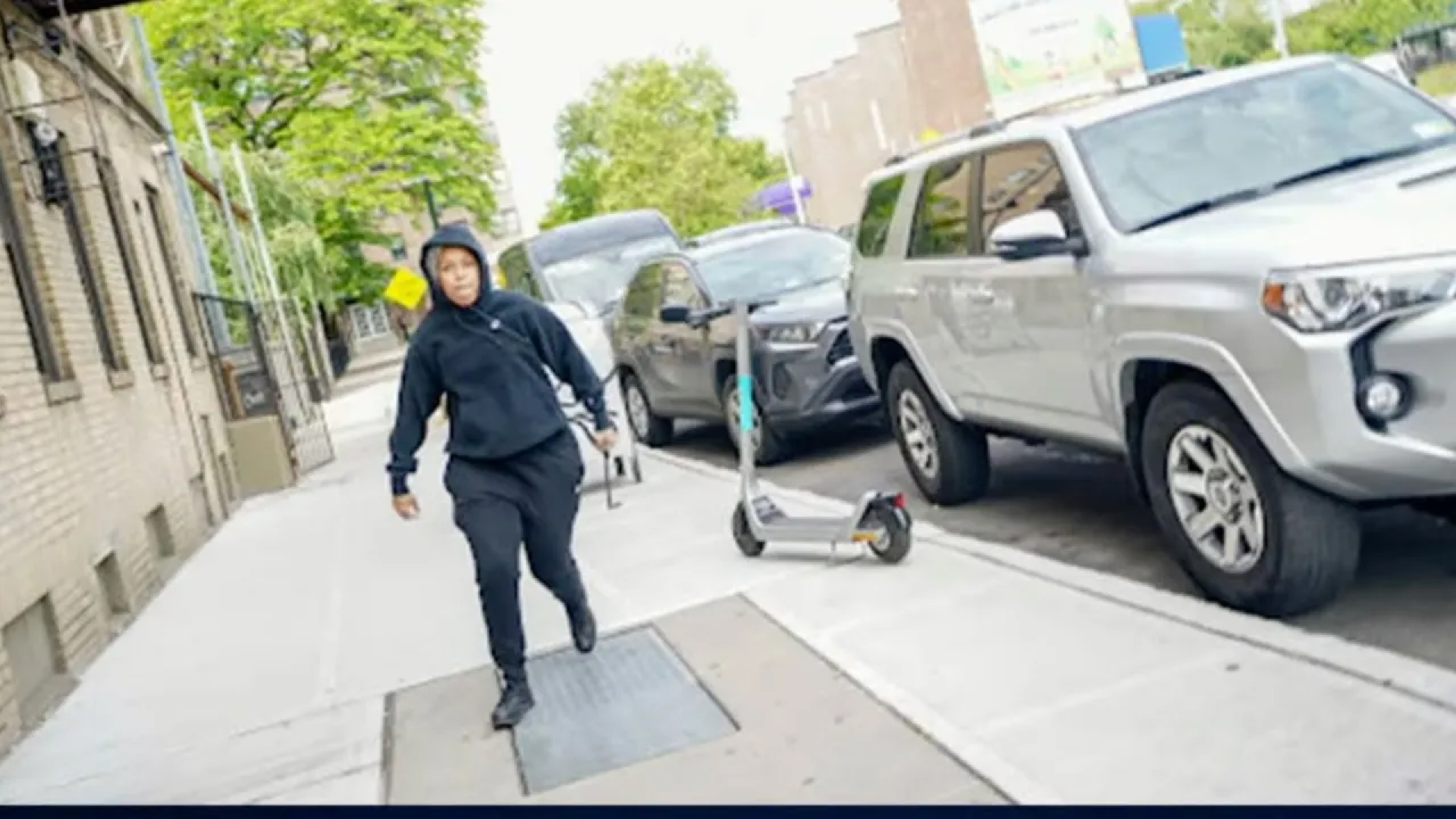 It's a bit difficult to see the machete but she also went after them on the street.