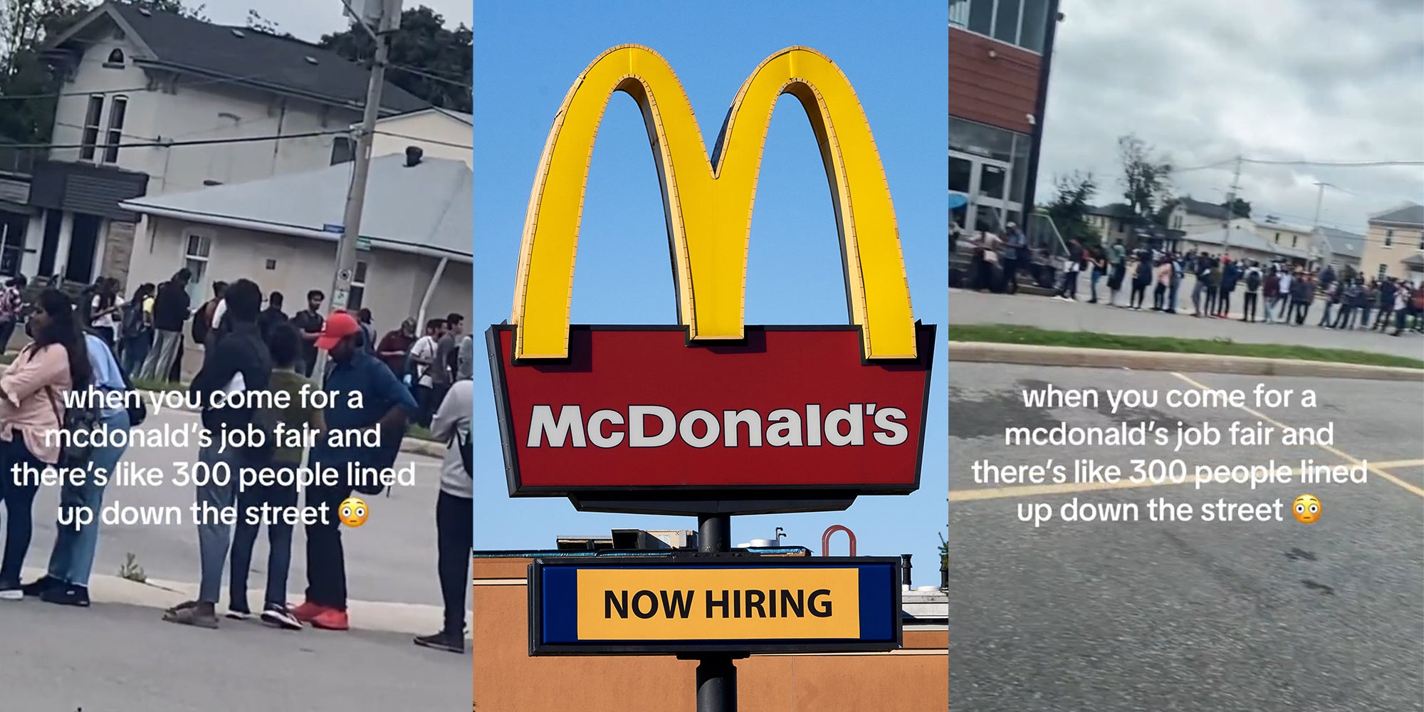 The on-screen caption reads, “When you come for a McDonalds job fair and there’s like 300 people lined up down the street.” She continues: “Its literally impossible to find a job here! This was before the job fair even started. People must have been lined up since 7am.”
