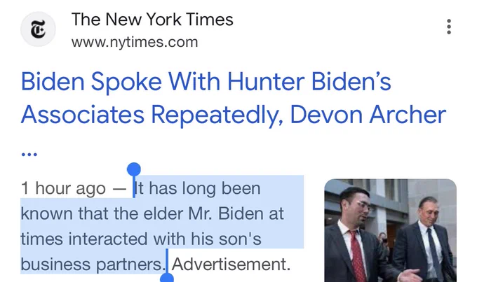 Following the explosive testimony from Devon Archer to Congress on Monday, the New York Times had no choice but other than to report the truth…Joe Biden LIED.