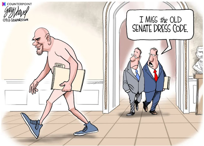 Fetterman is a spy for the Walmart men’s workout clothes section where I shop. P.S. You know his wife makes him gets dressed up in public, so she won’t look ugly.