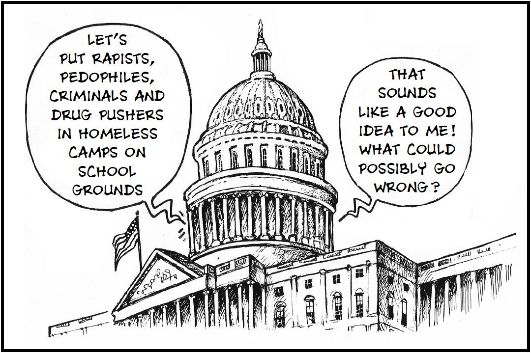 There’s a good idea: Put drug addicts and people who often have mental problems on our childrens’ playgrounds. What genius thought this up?