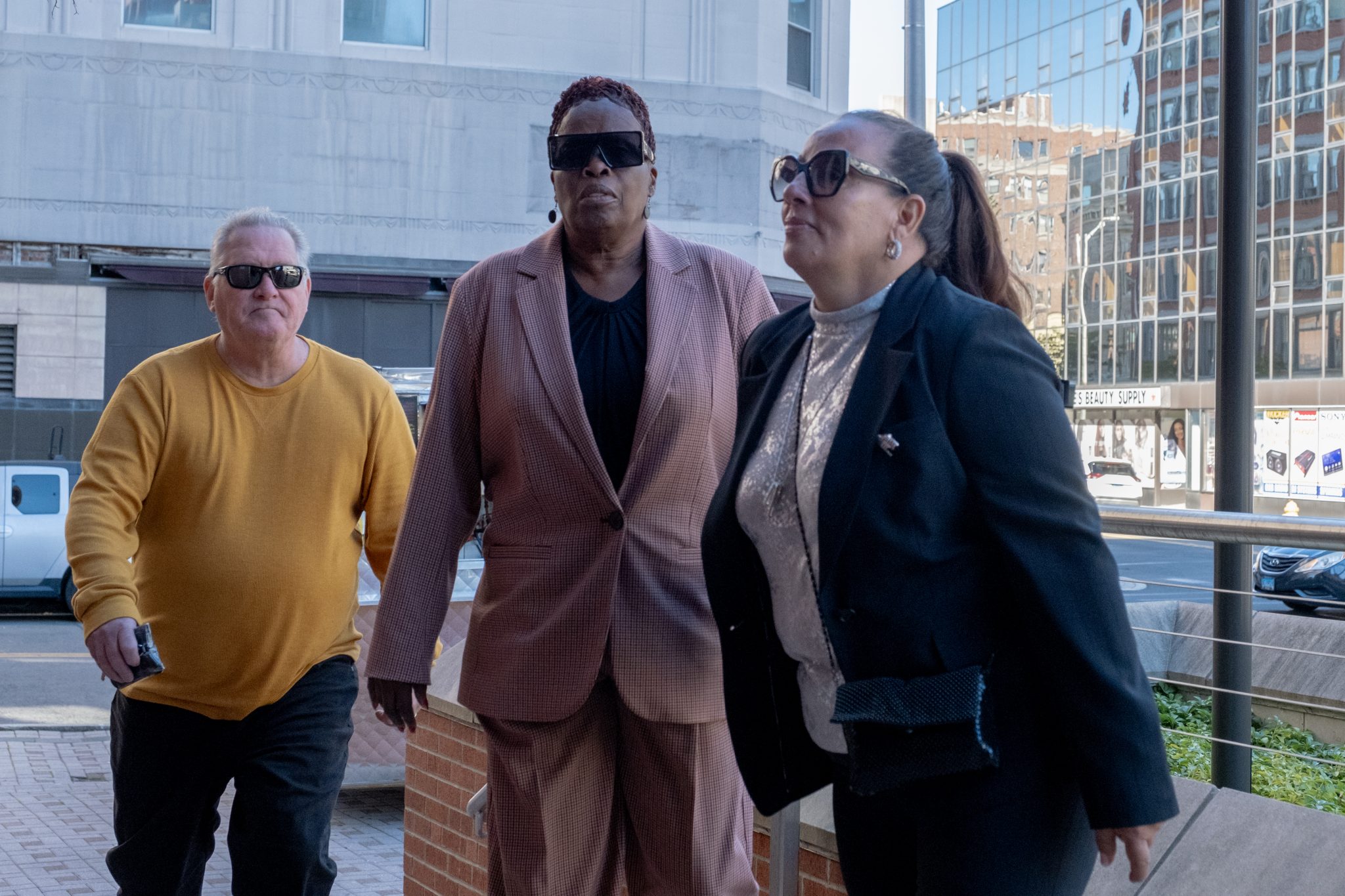Wanda Geter-Pataky, center, arrives at Superior Court in Bridgeport on Friday, Oct. 13,