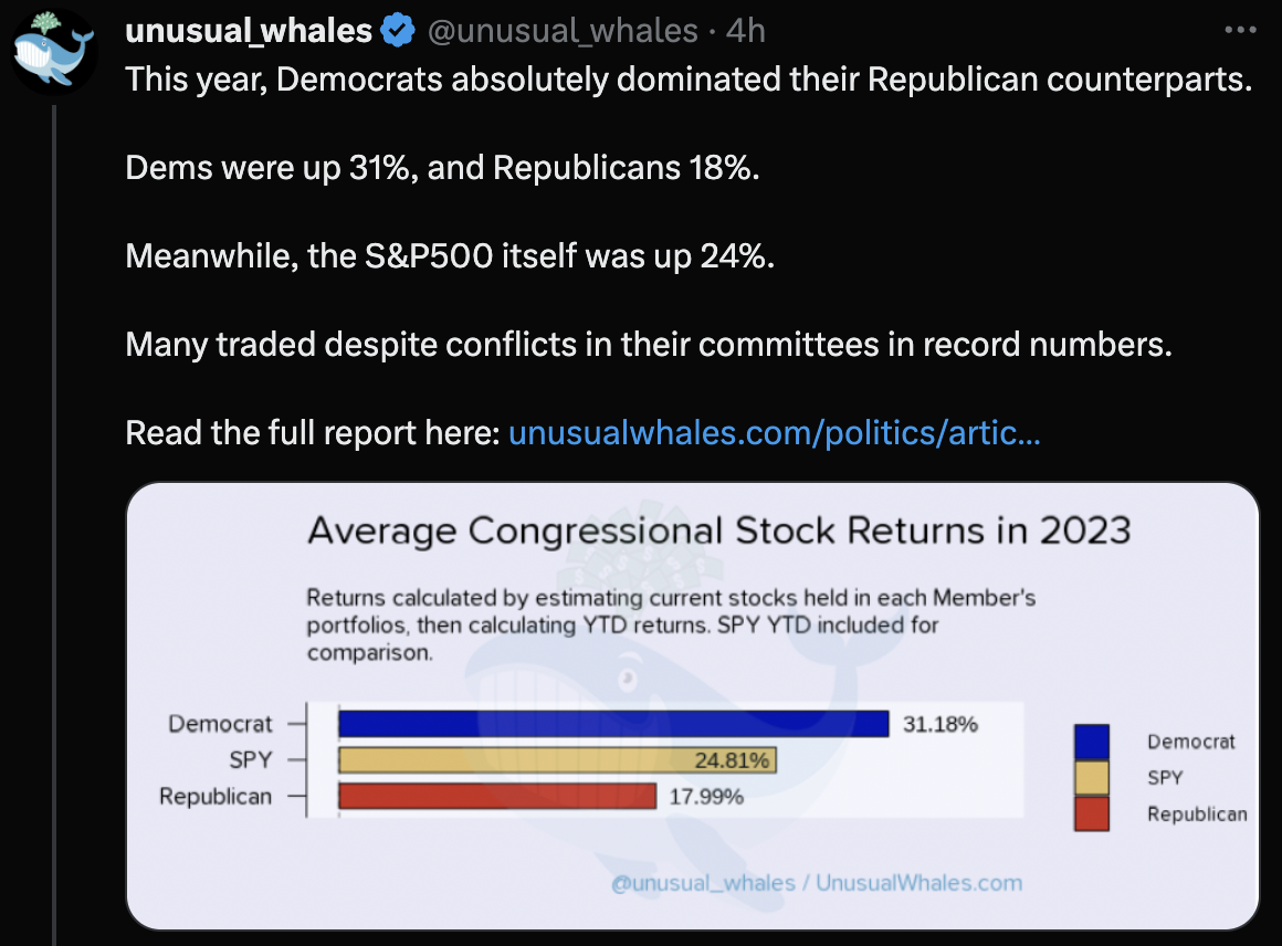 Several establishment members of Congress were among the top lawmakers to successfully trade stocks in 2023, a report by Unusual Whales found Tuesday.