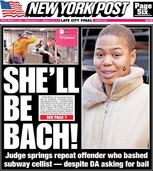 New York City Chief of Transit Michael Kemper referred to Hunter’s new arrest as an example of what Mayor Eric Adams called the city’s “recidivism problem” You don't say . . . .