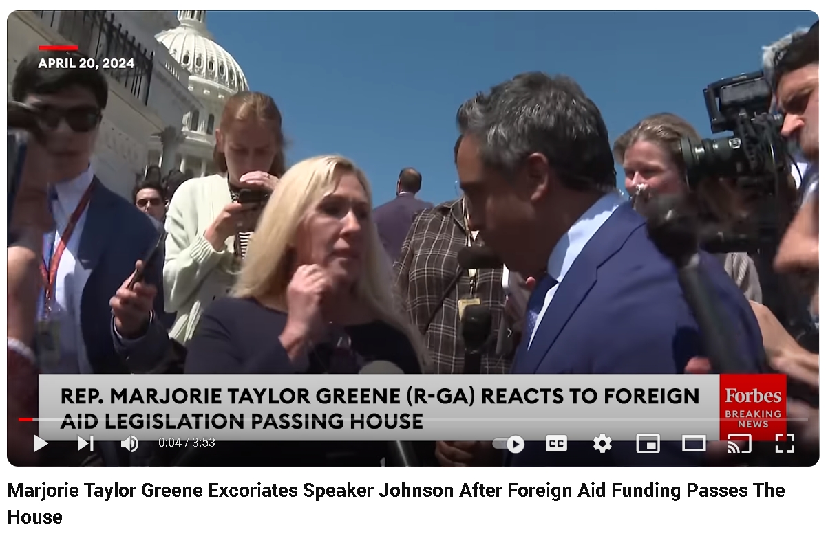 Karl said, “You just said something significant. You said you would oppose the tabled – the motion to vacate. In other words, you will protect Speaker Johnson’s job if Marjorie Taylor Greene and the others go through with their threat to try to remove him?”