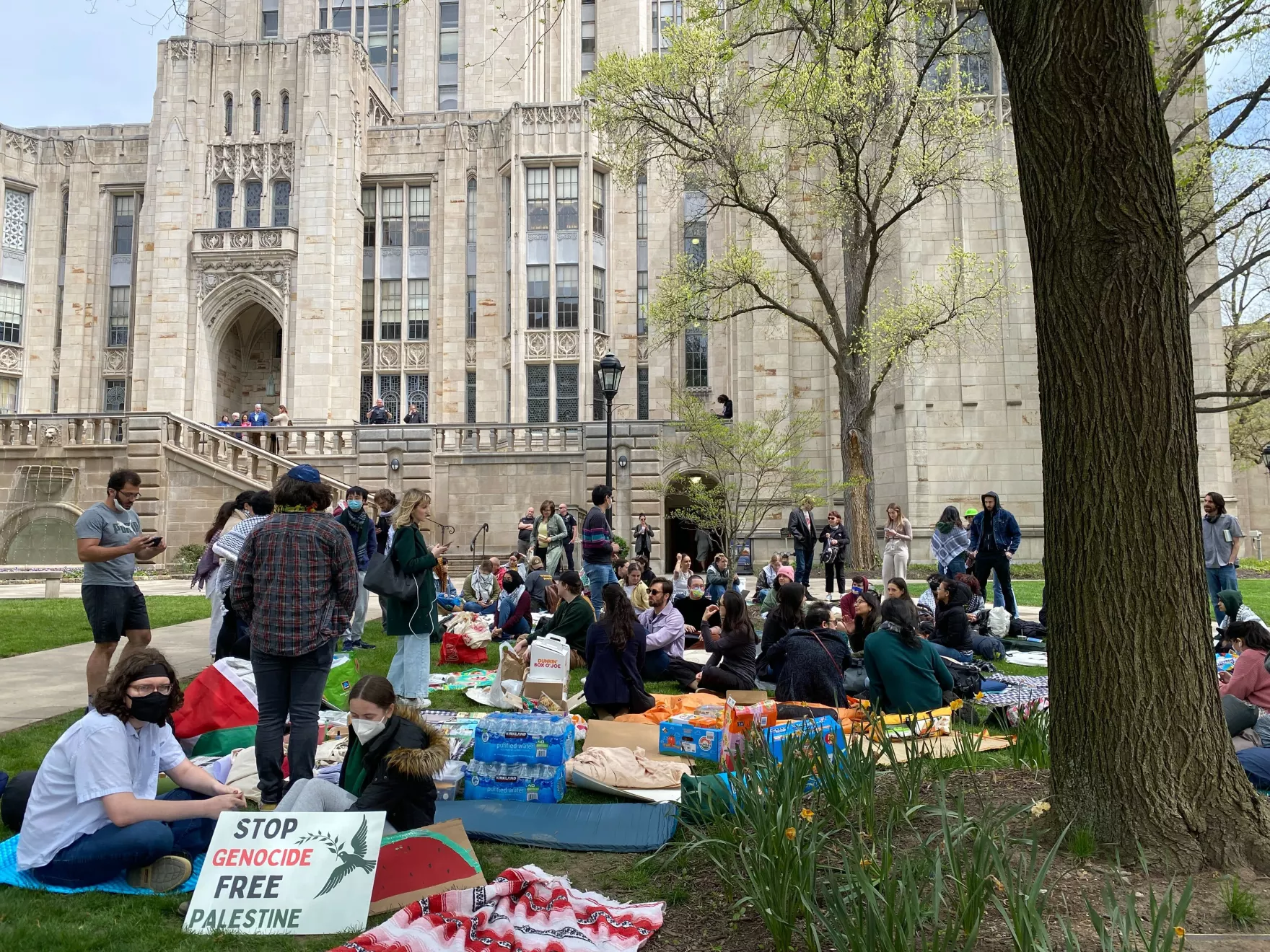 Amid continued tensions and violence in Gaza and Israel, students at the University of Pittsburgh organized a sit-in outside of the Cathedral of Learning on Tuesday.