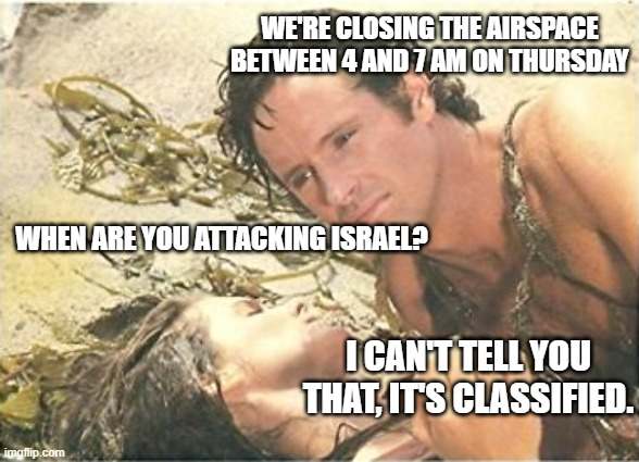 Since the earliest threat Iran’s attack “could come at any moment” and “we’ll break away if the Iranian counter strike against Israel happens. It could be tonight.”