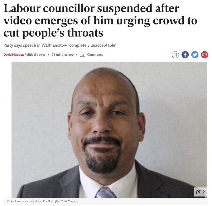 Labour councillor suspended after video emerges of him urging crowd to cut people's throats Party says speech in Walthamstow 'completely unacceptable'