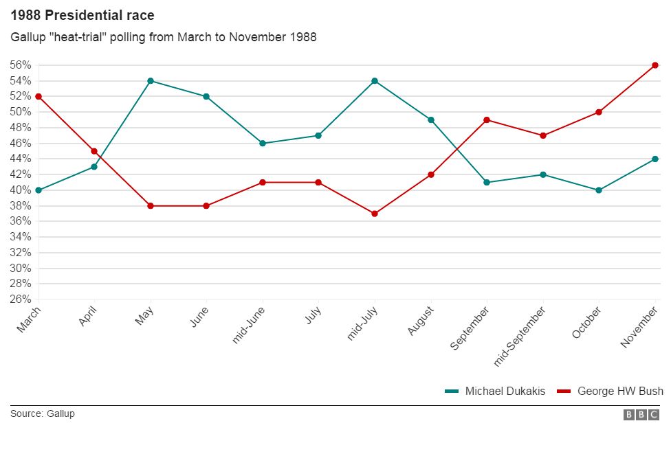 Not at all. Dukakis wasn’t close to Bush. Ever. The country just has fallen that much in a few decades.