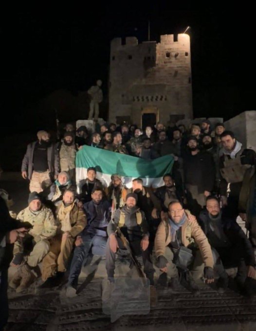 By late evening, fighters posed with their flag outside the Aleppo citadel in the city’s centre, as they claimed the capture of the entire city, home to 2 million people.