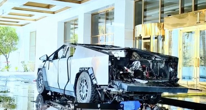 The evil knuckleheads picked the wrong vehicle for a terrorist attack. Cybertruck actually contained the explosion and directed the blast upwards.