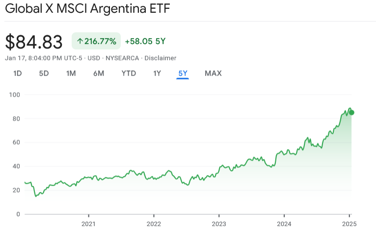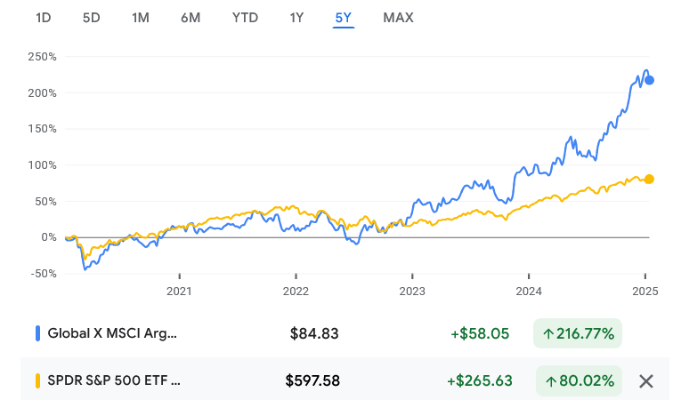 ARGT compared to SPY past 5 years