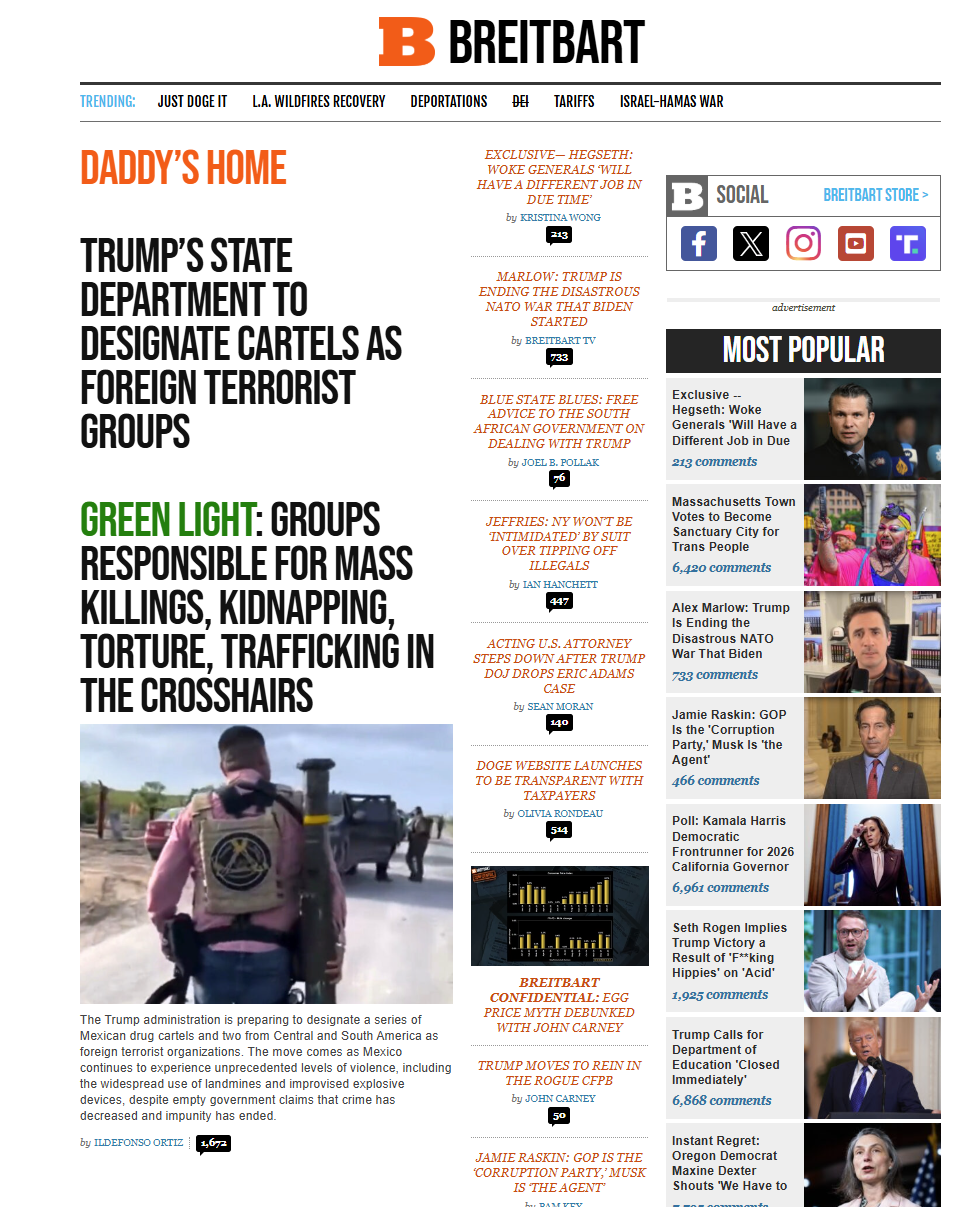 The news was first reported by the New York Times, which claimed that the list included the Colombian criminal organization Clan Del Golfo. However, according to Breitbart Texas Director Brandon Darby, who had access to various FBI documents regarding the upcoming order, the list meant the Gulf Cartel.