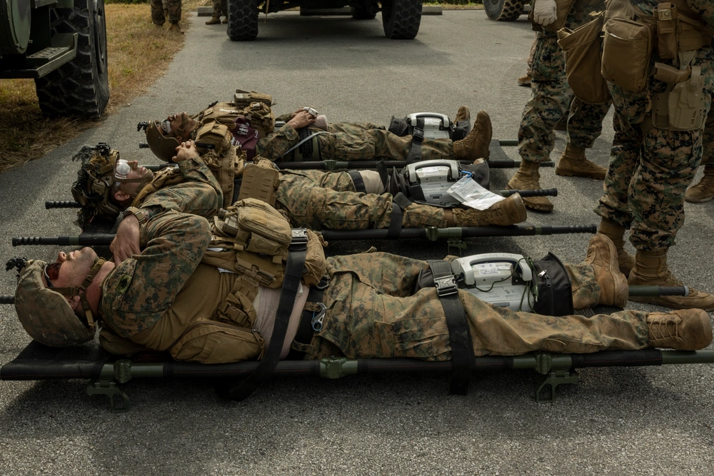 Prepare For Everything!! The ability to respond to a mass casualty event is a core mission of the 31st MEU that requires rapid response to effectively recover and triage military or civilian casualties by supplementing the medical resources at the scene. The America Amphibious Ready Group (ARG), compromising amphibious assault carrier USS America (LHA 6), amphibious transport dock ship USS San Diego (LPD 22), and amphibious dock landing ship USS Rushmore (LSD 47) along with the 31st Marine Expeditionary Unit (MEU), are underway conducting routine integrated operations in U.S. 7th Fleet area of operations. U.S. 7th Fleet is the U.S. Navy’s largest forward- deployed numbered fleet, and routinely interacts and operated with allies and partners to preserve a free and open Indo-Pacific region. (U.S. Marine Corps photo by Pfc. Skilah Sanchez)
