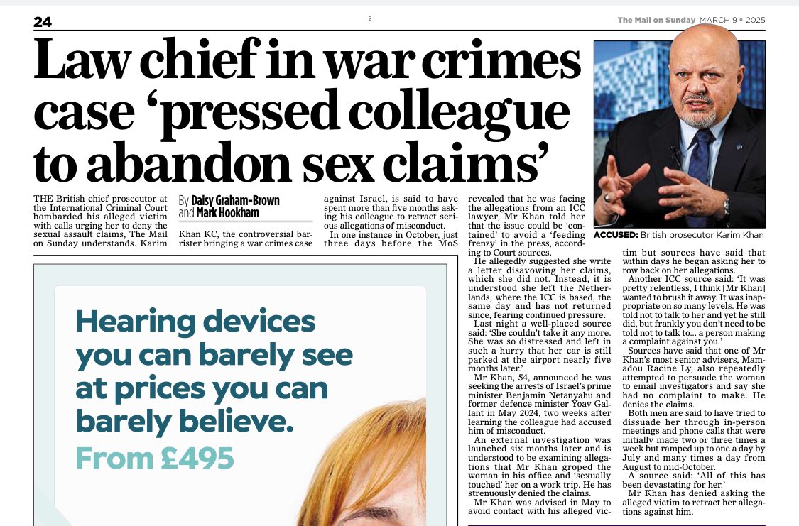 British law chief bringing war crimes case against Israel 'pressed alleged victim to deny sexual assault claims'.