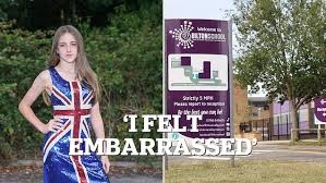 A diversity day at a secondary school in Warwickshire ended in upset and apologies after a 12-year-old girl wearing a union flag dress was prevented from delivering a speech she had written about British culture.