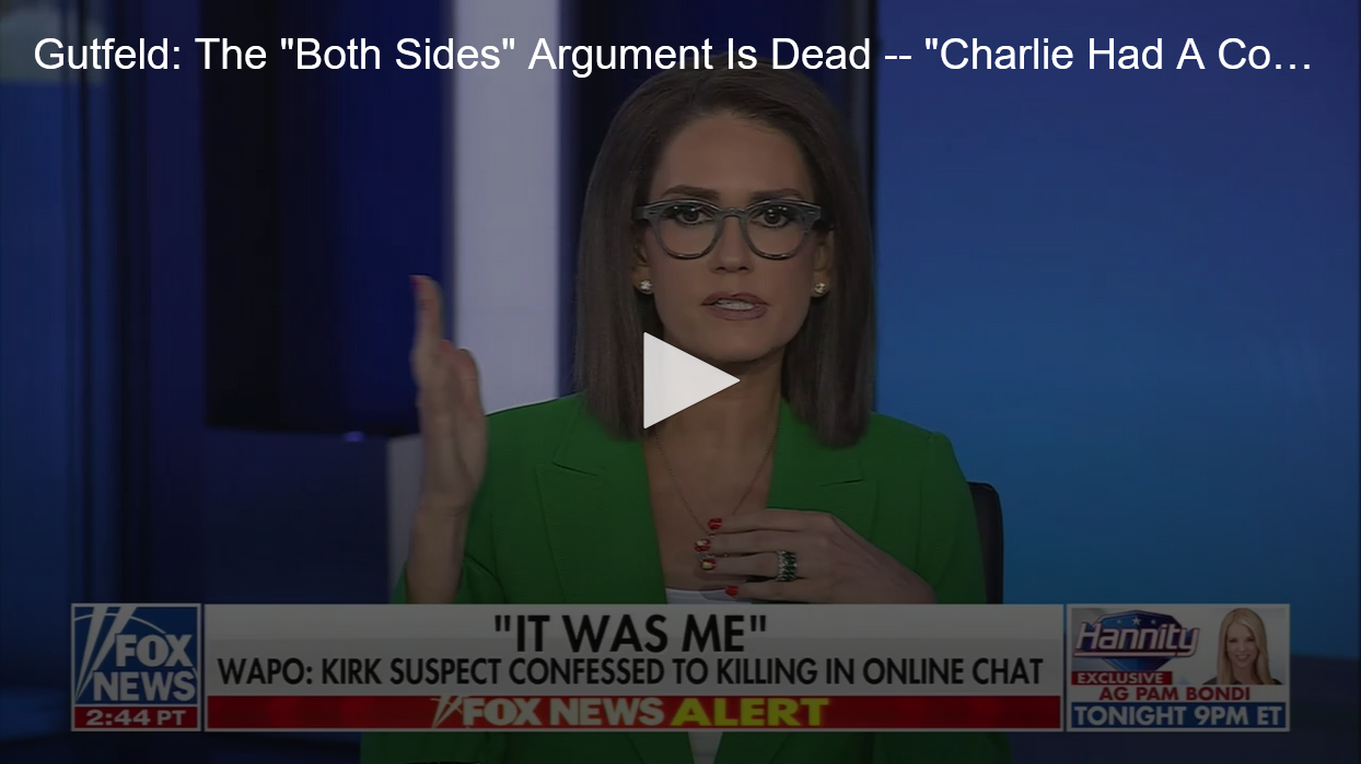 GREG GUTFELD: Don't play that bullshit with me. You know there was no what I'm saying is there was no demonization amplification about that woman before she died; it was a specific crime against her by somebody who knew her. Bring up Josh Shapiro, but you will not bring up, for example, that was a pro-Palestine person. Don't use your "what about this" angle. The fact of the matter is the both-sides argument not only doesn't fly — we don't care. We don't care about your both-sides argument. That sh-t is dead to us. There is no cognitive dissonance on our side too. On your side, your beliefs do not match reality, so you're coming up with these rationalizations: "What about this," or "what about that?"