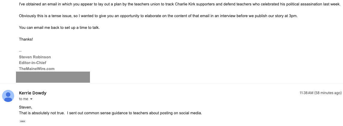 An internal union email obtained by the Maine Wire shows the National Education Association (NEA) has told its members that it’s monitoring supporters of the slain conservative activist and is preparing legal and communications defenses for school teachers who publicly celebrated his assassination.