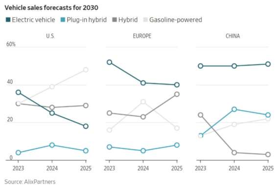 “Automakers have been saying that consumers aren’t adopting EVs as quickly as expected, and government efforts to proliferate the technology are hammering their bottom lines,” explains the Wall Street Journal. It quotes an expert at the consulting firm McKinsey as concluding that “EVs aren’t smartphones.”