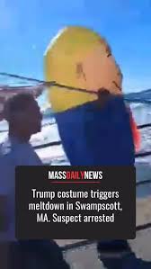 A man dressed in a Donald Trump costume was allegedly assaulted by another man during a "No Kings" rally in Swampscott, Massachusetts.