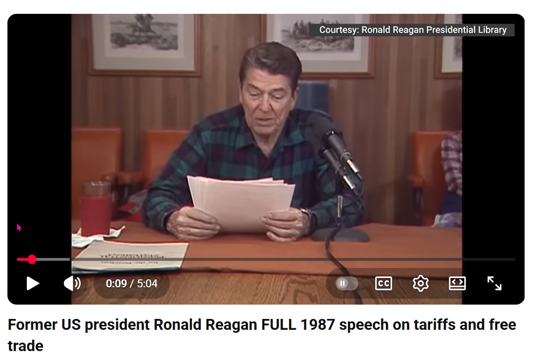 Reagan was talking about free trade. They tariff us isn’t free trade.