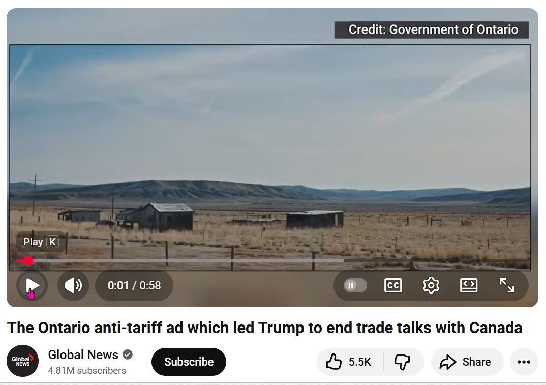 The ad’s broadcast comes one day after Trump ended trade talks with Canada, as Breitbart News previously reported. The president halted negotiations following the initial discovery of the ad, writing that “ALL TRADE NEGOTIATIONS WITH CANADA ARE HEREBY TERMINATED.”