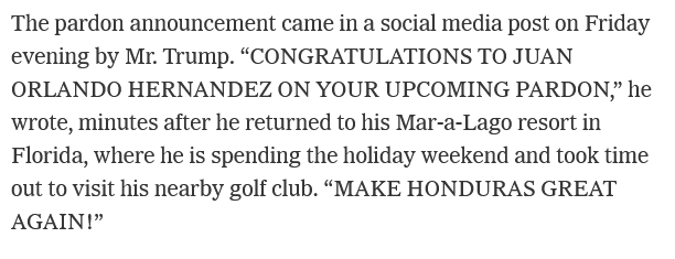 Sounds like standard SDNY lawfare... Honduras was a narcostate way back in 2009 at least, when Zelaya’s gangs were rioting and protesting. It didn’t just happen after 2014.