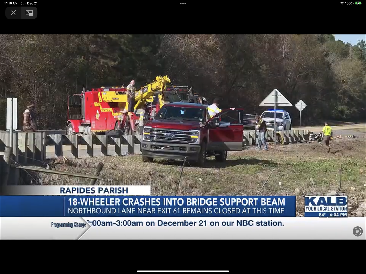 ALEXANDRIA, La. (KALB/Gray News) - Authorities in Louisiana are investigating a crash involving a semitruck that collided with an interstate bridge.