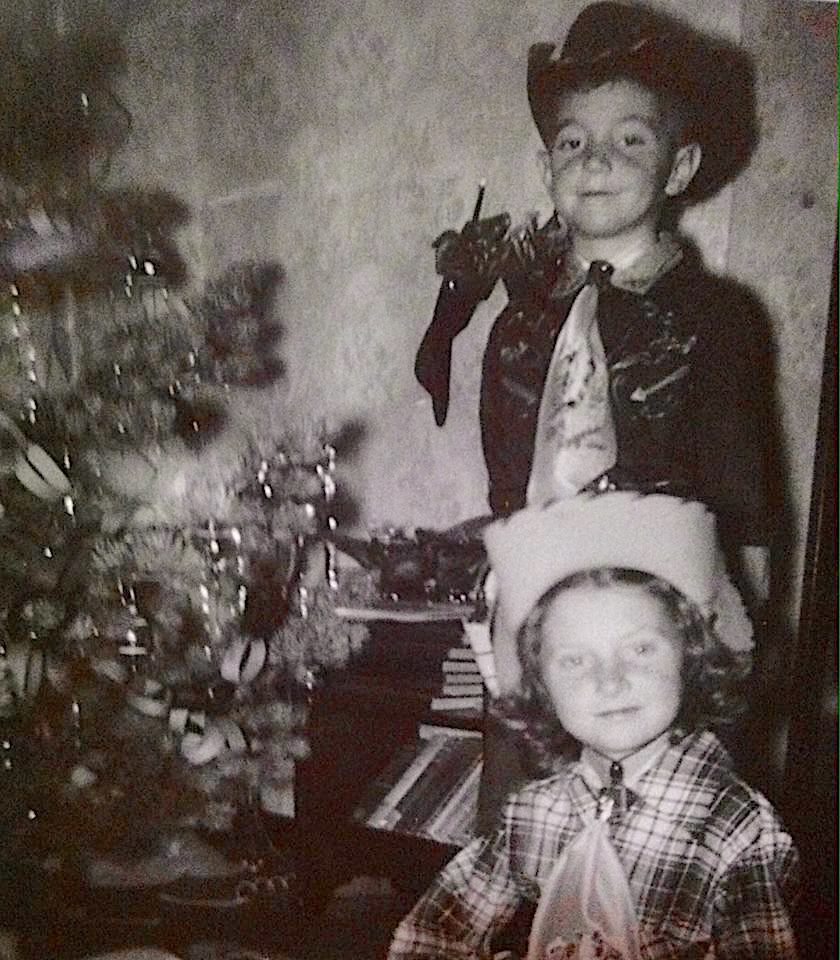 | There are so many, but... My VERY Favorite Christmas: It was this....when my brother and I received our Roy Rogers and Dale Evans gear, including cap pistols on a holster belt. It was a total surprise, and we put it all on at once. First so my mom, who was the family recorder of events, could take this picture. Second so we could get outside and show all our friends how much Santa loved us. And to play cowboys and Indians with them all the rest of the day. Such memories........... |