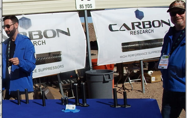 There were many suppressor manufacturers at the range. Carbon Research deserves a mention for their very lightweight and effective silencers. Their suppressors/silencers are made with a minimum of metal to protect the carbon fiber from abrasion.