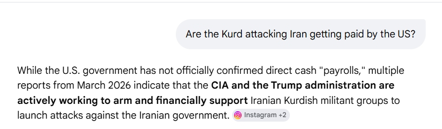 Seems this might have been disinformation, as the Iraqi Kurds are denying it. Or maybe they want this quiet, so their homes don’t get destroyed by Iranian short range missiles. Also rumors of Iranian Kurds planning an offensive.