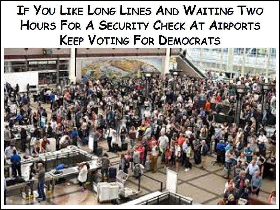 The Democrats have refused to pass funding for the Department of Homeland Security (DHS). That helped to cause chaos at the airports after the Transportation Security Administration (TSA) had hundreds of its employees quit because they weren't being paid. Then, too, some are calling in sick. The wait times to get through security ballooned up to hours, with mammoth lines. Not only that, but it puts all of us in a more dangerous situation when the whole of the DHS isn't being funded and protecting our security.