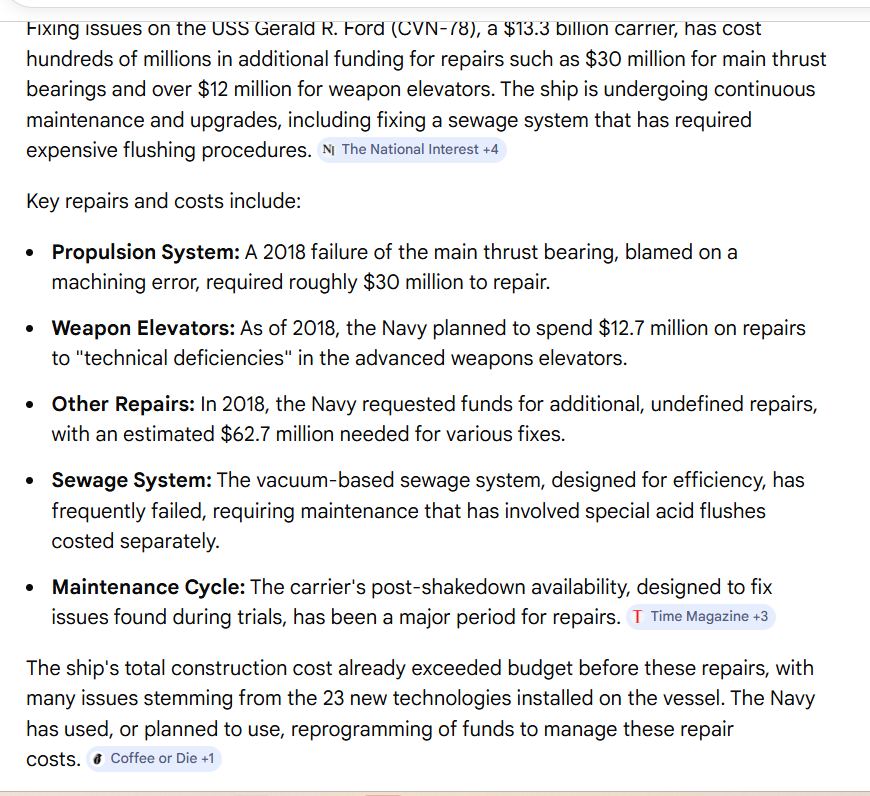 I read that this septic design flaw can’t be fixed and is being built into future Ford class carriers as well...that was a while ago though.