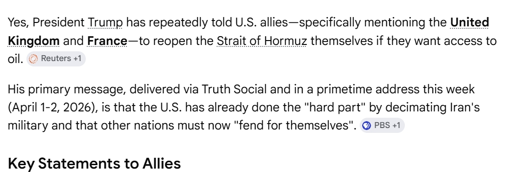 Well, President Trump DID tell the Europeans to go open the Strait of Hormuz themselves — didn’t he?