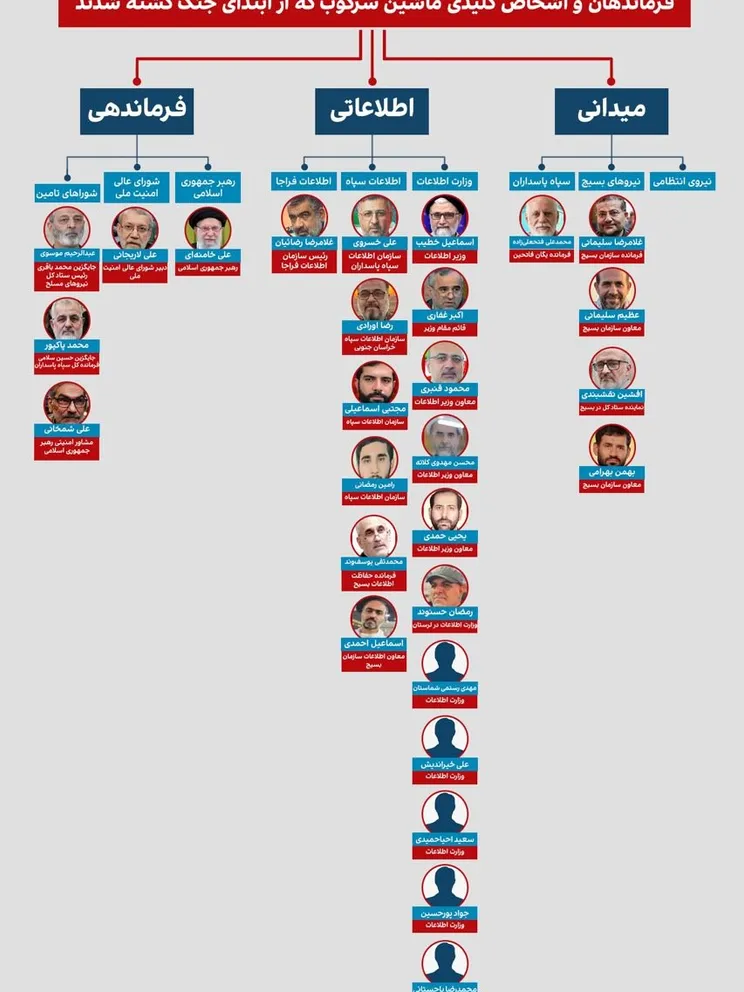 Gholamreza Rezaian, the head of Faraja Intelligence Organization, was killed in the second war and Ali Reza Lotfi, the deputy of this organization, was killed in the 12-day war.