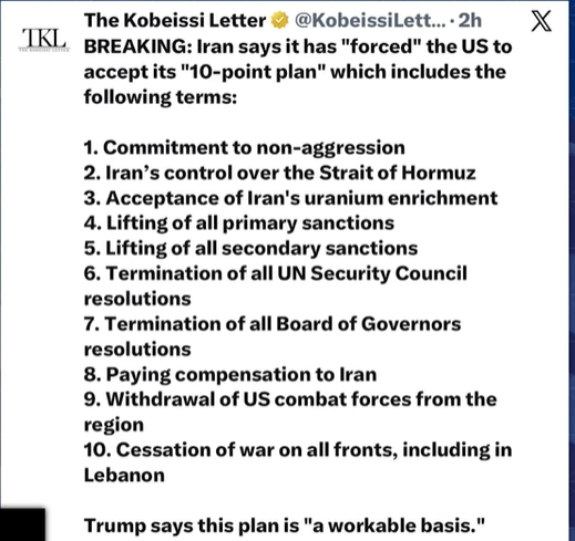 The 10 point plan that Trump acknowledged in his Truth Social post did include a cessation of Israeli attacks on Lebanon and the ability of Iran to charge fees...