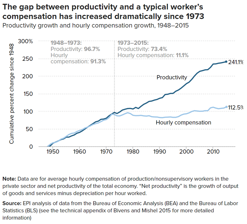 This gap did not come about by accident. It was a consequence of corporate strategies that privileged shareholder returns over worker pay. It was also aided by the erosion of safeguards against corporate power, such as labor unions, and by policy choices that let the minimum wage wither.
