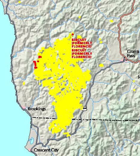 The Biscuit fire started with a lightning strike July 13. Since then, the fire has roared through vast portions of the Siskiyou National Forest and almost all of the Kalmiopsis Wilderness Area in southwestern Oregon.![]()