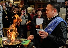 Mass had been over only a few minutes and the Rev. Leo Patalinghug had already traded his green and gold robe for an apron, his priest's collar poking out over the top. He was chopping onions with the speed and flair of a celebrity chef --which he is.Read the rest. You can also visit his website and watch some of his cooking videos.