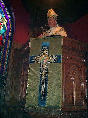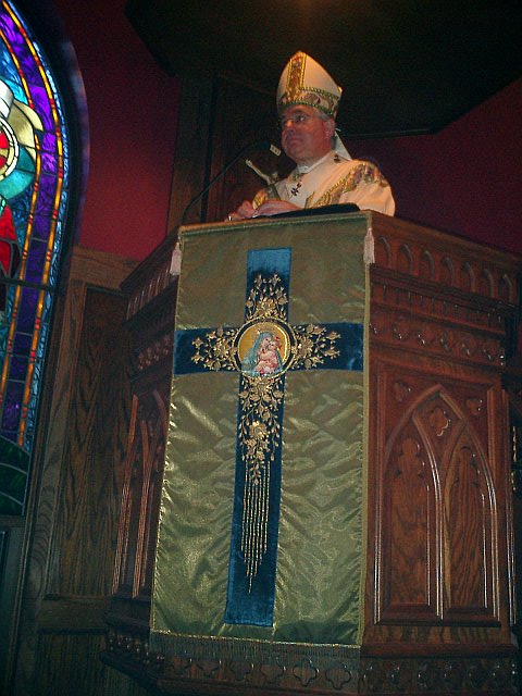 All this occurred 475 years ago. I therefore find it rather appropriate that on the feast of St. Benedict, we are gathered together today in the name of Christ and in the name of the Catholic Church as a witness to the beautiful reality of what was once Catholic England, and now is the Pastoral Provision for the Anglican Use established by our beloved Pope John Paul II, and in the Archdiocese of San Antonio by my predecessor, Archbishop Patrick Flores who, twenty-five years ago, decided to erect this personal parish of Our Lady of the Atonement in which many of the elements of English Catholicism are preserved and given new life in the Catholic Church.