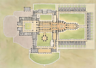 Their architect, James McCrery, has been working furiously to prepare initial drawings for their building complex (a once-in-a-lifetime dream commission), which has now been brought to the end of schematic design. (Schematic design means that it is only the initial, approved conception of the building. It will then go through design development to receive its final details. For that reason, many of the images shown are not highly detailed or use what are called "place holders" meant to give a general idea. In other words, if you are an architectural nit picker like I am, hold your nits for a few months.)
