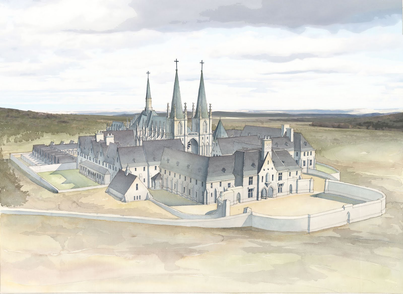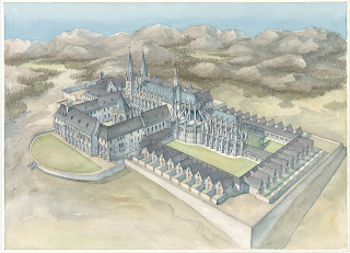 The Carmelites asked for a decidedly French Gothic design centered around a large chapel. Small hermitages are located to the east of the chapel since the monks live much of their day as hermits. The plan also provides for other needs: refectory, chapter house, infirmary, novitiate, offices, etc.