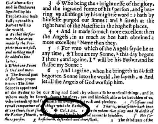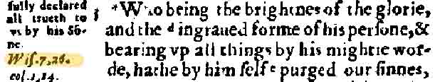 The 1560 edition provides an important cross reference from Hebrews 1:3 to Wisdom 7:26. Hebrews speaks of Jesus as the "refulgence" (Geneva Bible "brightness") of God's glory. The Greek word "Apaugasma" is used only in Hebrews 1:3 and Wisdom 7:26 in the Greek Bible. Moreover, the context of Wisdom's description of Wisdom personified sheds much light (pun intended) on who Jesus is. Unfortunately, the readers of the later 1599 edition were left in the dark as to this connection.