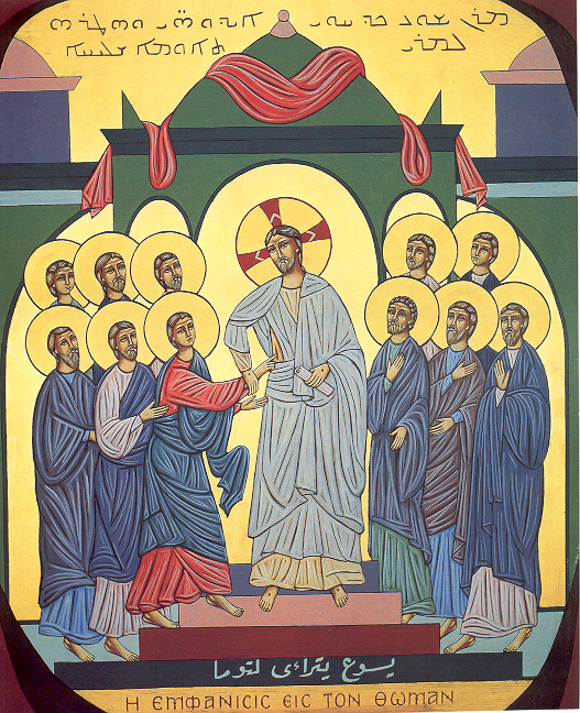 and the disciples gathered in the upper room. Now the appearances of the Lord are over. In overcoming the hesitation of Thomas, the Lord revealed to the apostles the truth of the resurrection. Christ has risen, truly risen!