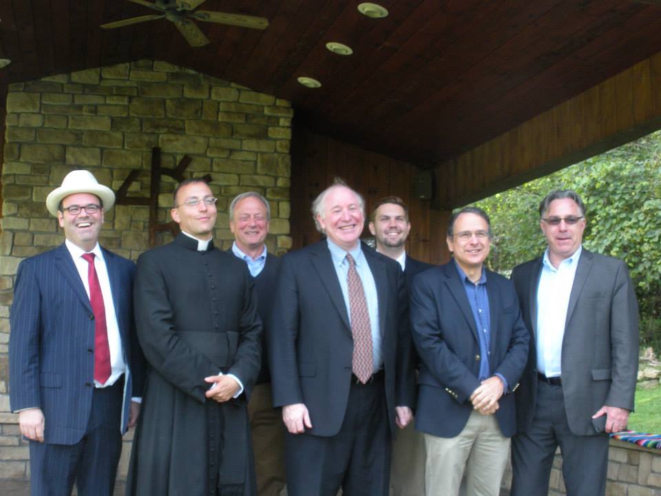 | Left to right: Kenneth Wolfe; Father Gregory Pendergraft, FSSP; Eric Frankovich; John Vennari; James Vogel; Christopher Ferrara; and Michael Matt. |