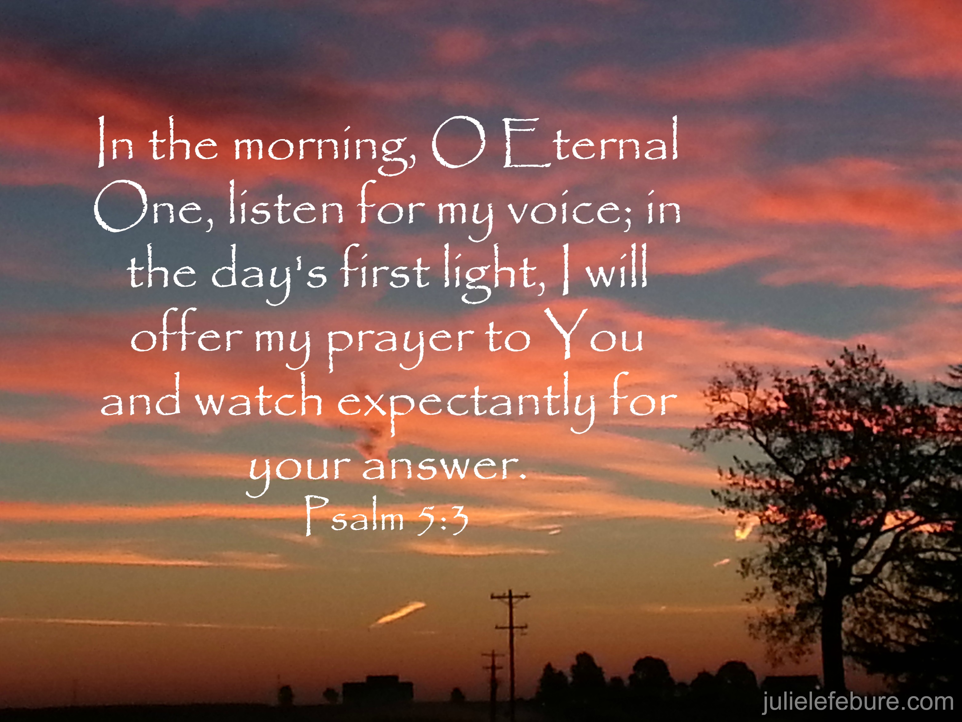 Hear us at the beginning of a new day. LORD, listen to our requests and our voices as we cry to You for help! You alone are our hope and trust. We wait expectantly for Your answer.