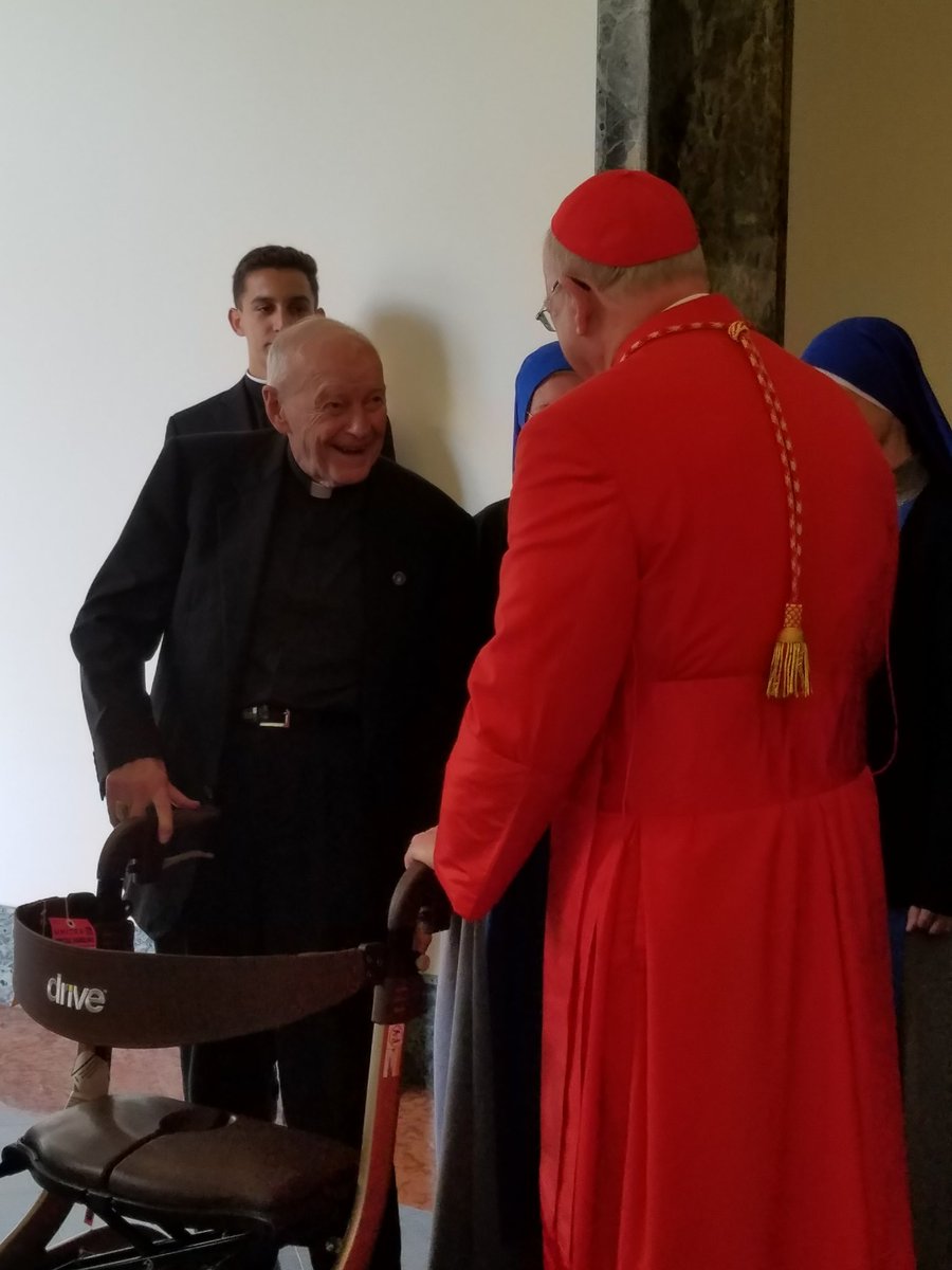 Ted McCarrick congratulates his friend Kevin Farrell on his creation as Cardinal